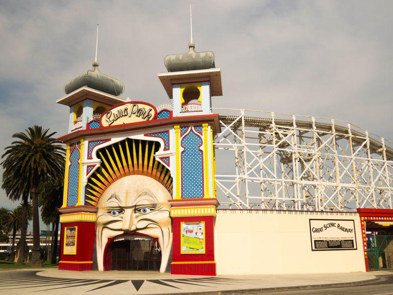 Le fameux Luna Park est un parc d’attraction ouvert toute l’année, implanté entre la plage et Acland Street. Il a été ouvert en décembre 1912 et a donc plus de 100 ans ! Comme son confrère de Sydney construit en 1935, ce Luna Park est caractérisé par sa porte d’entrée en forme de bouche.