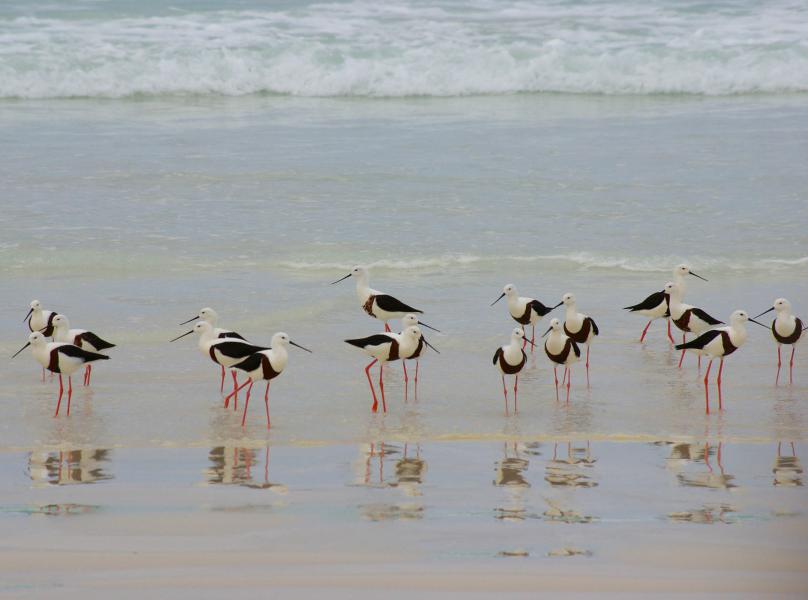 La conduite sur la plage est extraordinaire. C’est une sensation de liberté incroyable, une bouffée de bonheur indescriptible. Cape Arid est le paradis pour la faune et la flore. Plus de 1 100 espèces de plantes sont présentes sur le parc et pas moins de 160 espèces d’oiseaux. On repère sur la plage une bande de « Banded Stilt », ces oiseaux blancs et noirs qui se distinguent par leur bec noir long et fin, leurs hautes pattes orange. Quelques kilomètres plus loin, nous apercevons trois oies du Cape Barren, souvent observées à Cape Arid.