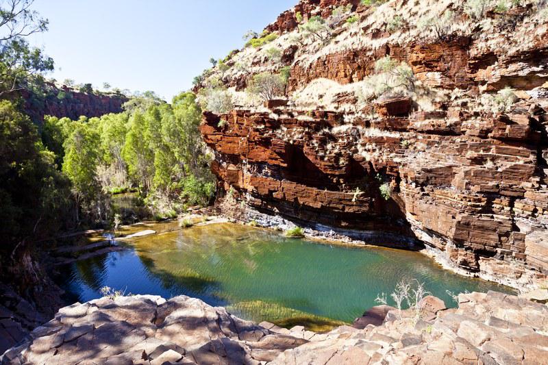 Commencez par descendre au pied de Fortescue Falls, puis marchez aux confins de la gorge jusqu’à atteindre Circular Pool. En chemin, vous aurez peut-être les pieds dans l’eau à certains passages, mais qu’importe, c’est l’aventure. Au bout, remontez la gorge et faites demi-tour vers le parking en longeant le précipice. Vue spectaculaire garantie ! Prenez vraiment le temps de réaliser cette boucle complète si vous le pouvez, cela vaut vraiment le détour. Les eaux de Fortescue Falls coulent toute l’année au sein de Dales Gorge et les piscines de Fern Pool et Circular Pool, le plus souvent à l’ombre, restent fraîches toute l’année.