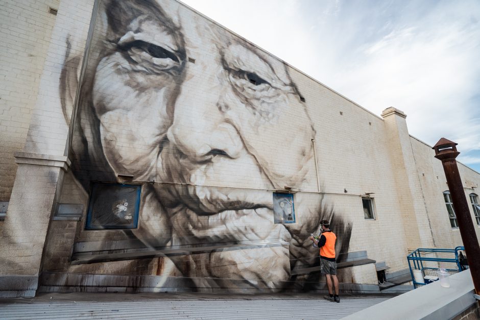 Guido Van Helten a réalisé d’autres peintures murales spectaculaires dans le monde entier, visitez son site.