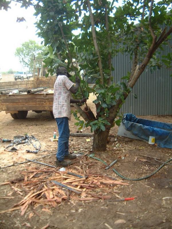 Dans le bush, après avoir trouvé un eucalyptus qui sonne creux (évitons de faire tomber ces pauvres koalas en tapant trop fort), on l’abat ou on en coupe quelques branches.