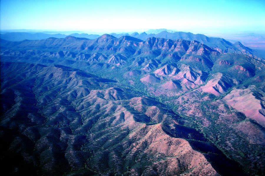 S’étendant sur plus de 400 km du nord au sud, les Flinders Ranges prennent leurs racines dans la région de Port Pirie, 200 km au nord d’Adelaide, et finissent leur course crantée au lac Callabonna, dans le voisinage des frontières désertées du Queensland et du New South Wales. Les chemins y sont à la mesure de l’immensité : les Flinders accueillent 500 des 1 200 km de la randonnée pédestre Heysen Trail et 300 des 900 km du parcours cycliste Mawson Trail.