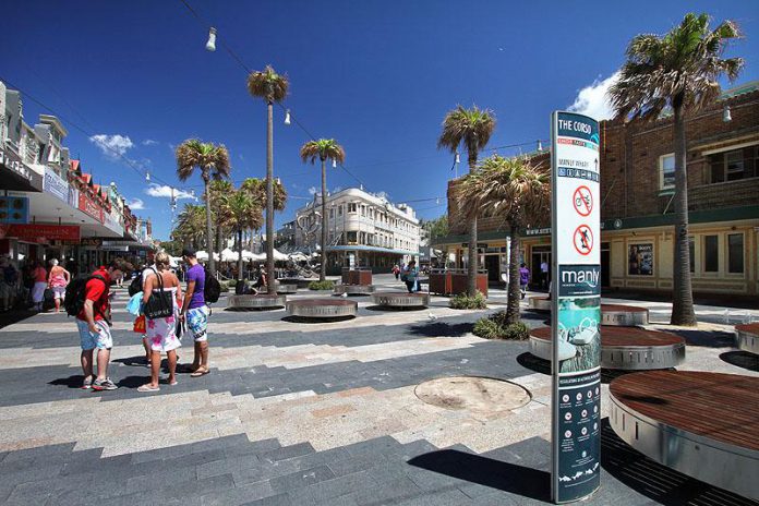 Une fois débarqué du ferry, il est de rigueur de passer par le Corso, une promenade de boutiques et de bistros, pour accéder à la plage principale de Manly, bordée de pins et tout aussi fréquentée que Bondi. À quelques minutes de marche, on peut rejoindre Cabbage Tree Bay et Shelly Beach, une plage plus petite et de fait légèrement plus tranquille, où une musique tropicale s’échappe du café local, avec vue sur la plage de Manly par-delà l’océan.
