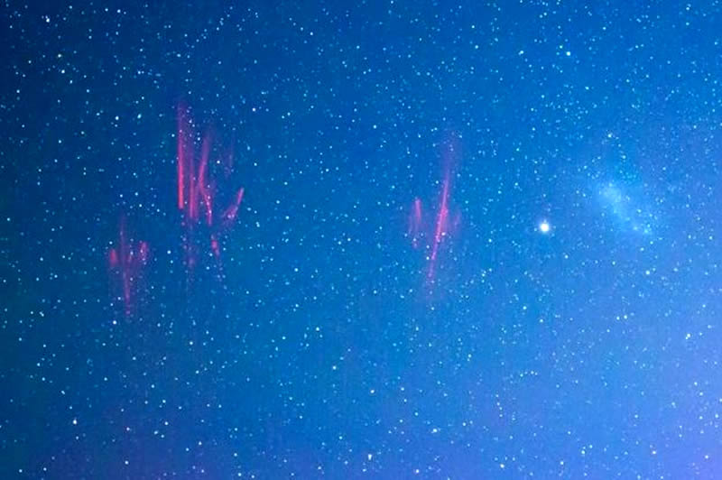 Il faut un ciel clair sur de longues distances, un ciel noir sans lune, un orage puissant et un équipement photographique hautement sensible au rouge…et une chance fantastique.