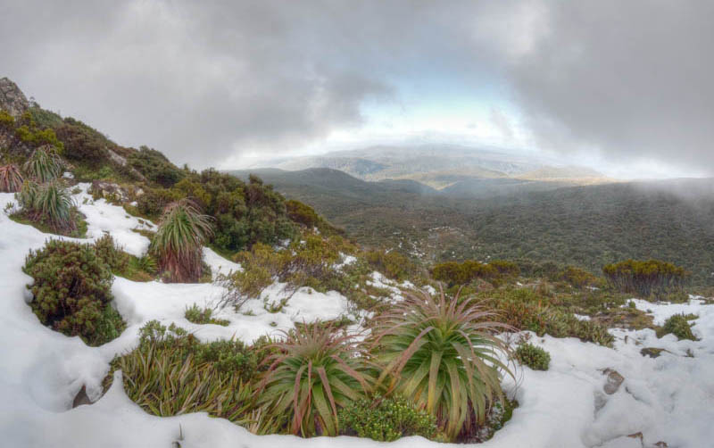 Plus vous montez, plus la flore se modifie pour s’adapter aux conditions extrêmes, laissant la place à des arbustes plutôt qu’aux grands arbres, avec des forêts moins denses. Les types de végétations alpines et sous-alpines (avec plusieurs sortes d’eucalyptus notamment) dominent dans le parc car la zone se situe en majorité à 600 m d’altitude au-dessus du niveau de la mer.